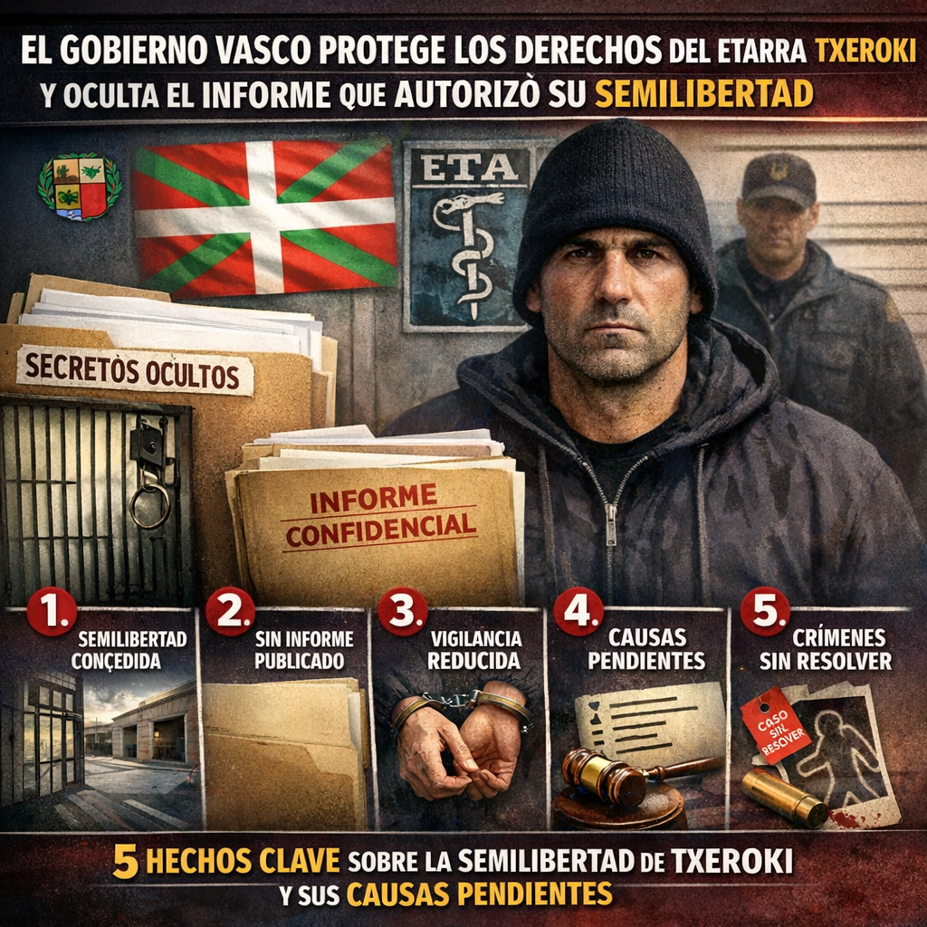 La semilibertad de Txeroki ha desatado una polémica sin precedentes en el País Vasco. El Gobierno vasco, en coalición con PNV y PSOE, ha alegado la protección de los “derechos fundamentales” del ex jefe militar de ETA, Mikel Garikoitz Aspiazu, alias Txeroki, para evitar revelar el informe que justificó su acceso a la semilibertad. Este documento sigue siendo secreto, lo que ha generado críticas de víctimas del terrorismo y de la sociedad civil.