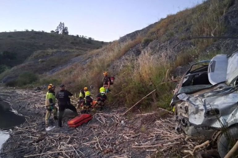 El vehículo, aunque cayó por el desnivel, no llegó a sumergirse en el agua, lo que no evitó la gravedad del impacto.