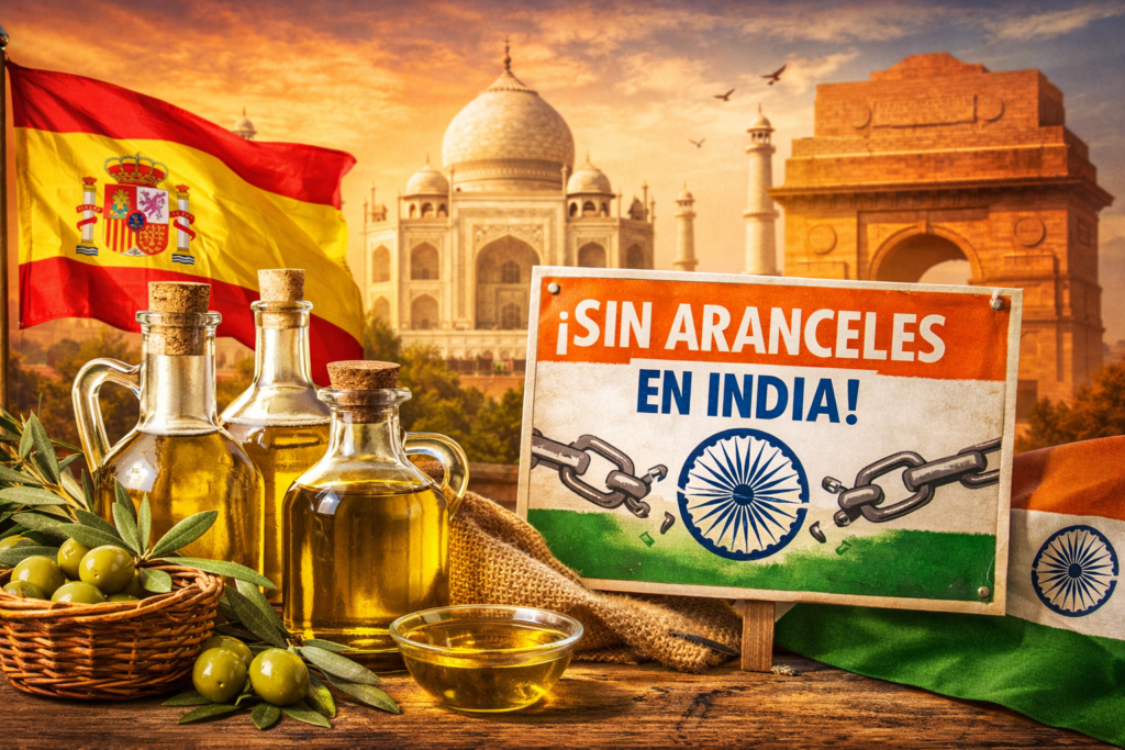 Aceite de oliva español. El sector oleícola nacional celebra uno de los mayores hitos comerciales de los últimos años tras el acuerdo de libre comercio alcanzado entre la Unión Europea y la India, que contempla la eliminación progresiva de los aranceles que gravaban hasta ahora este producto con tasas de entre el 40% y el 45%. La medida abre de par en par las puertas del enorme mercado indio al aceite de oliva español, líder mundial en producción y exportación, y anticipa un fuerte crecimiento del consumo en el país asiático.