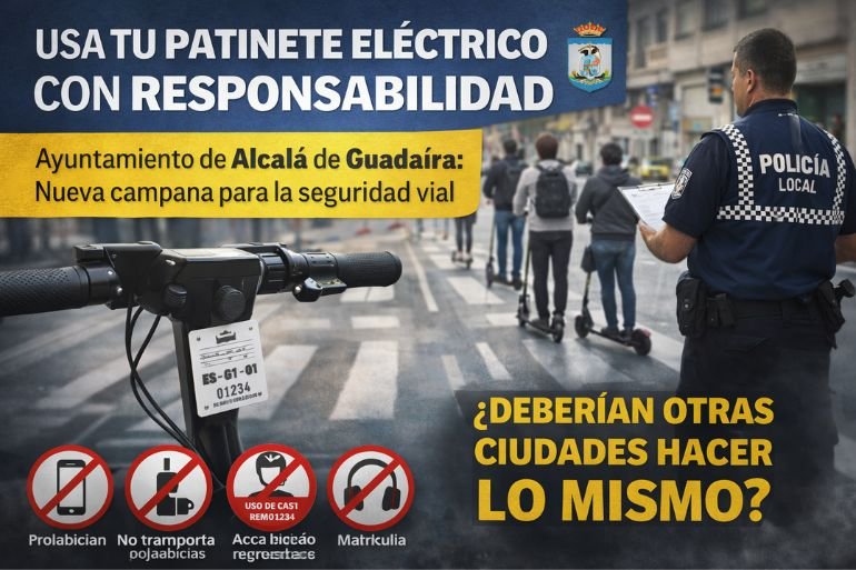 El Ayuntamiento de Alcalá de Guadaíra ha puesto en marcha una nueva campaña para promover el uso responsable y seguro de los patinetes eléctricos. La iniciativa busca concienciar a los usuarios sobre el cumplimiento de la normativa de tráfico y reforzar la seguridad vial en las calles del municipio.