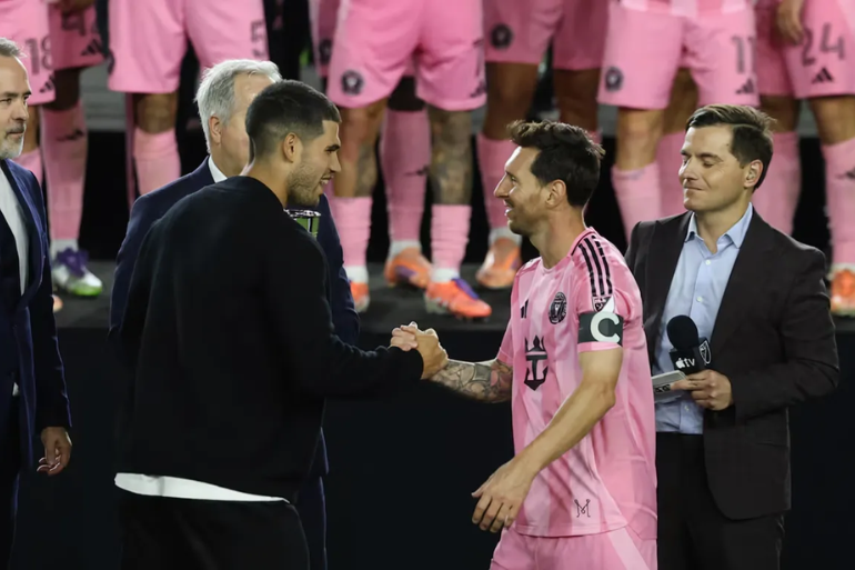 Alcaraz presenció en las gradas del Chase Stadium el partido de la Copa de Campeones de la Concacaf entre Inter Miami y Nashville, que finalizó 1-1, provocando la eliminación del equipo de Florida del torneo.