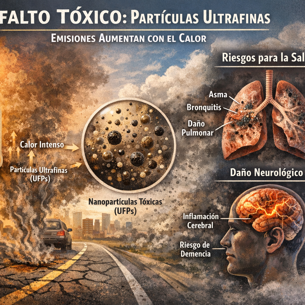 Asfalto tóxico partículas ultrafinas es el eje de un nuevo hallazgo científico que ha encendido las alarmas en el ámbito de la salud pública y la planificación urbana. El estudio advierte que el asfalto tóxico partículas ultrafinas libera compuestos contaminantes que aumentan de forma significativa con las altas temperaturas, generando un riesgo potencial para millones de personas expuestas diariamente en entornos urbanos.