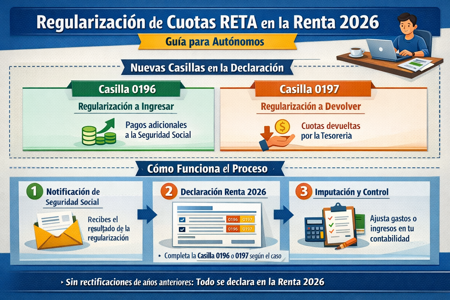 La regularización de cuotas RETA y las nuevas casillas de la Renta 2026 representan un cambio importante para los autónomos, permitiéndoles incluir de manera correcta pagos adicionales o devoluciones y mantener la contabilidad ajustada según el criterio oficial de la DGT. Prepararse con antelación y conocer estas novedades es clave para que la declaración de la Renta sea correcta y sin contratiempos.