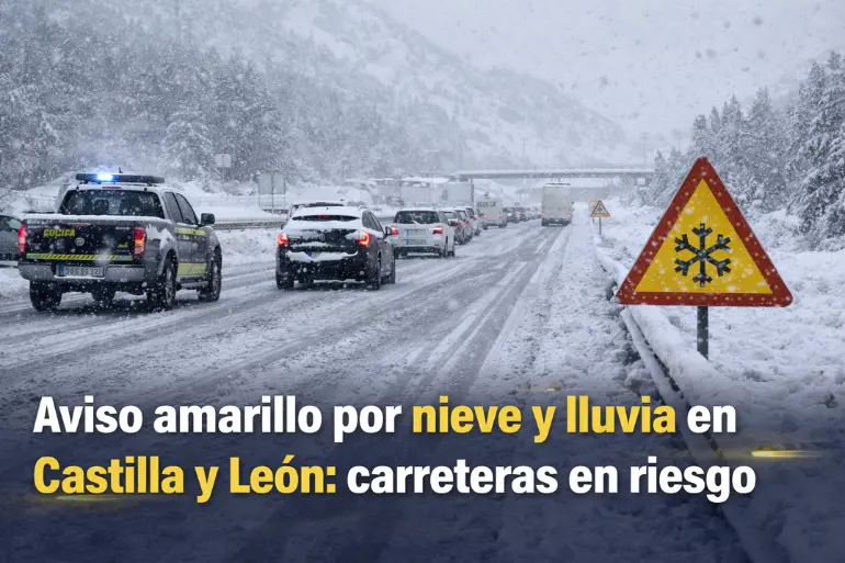 La AEMET activa avisos amarillos por nieve, lluvia y frío intenso en Castilla y León y otras comunidades, mientras la DGT restringe el tráfico pesado en varias autopistas clave.