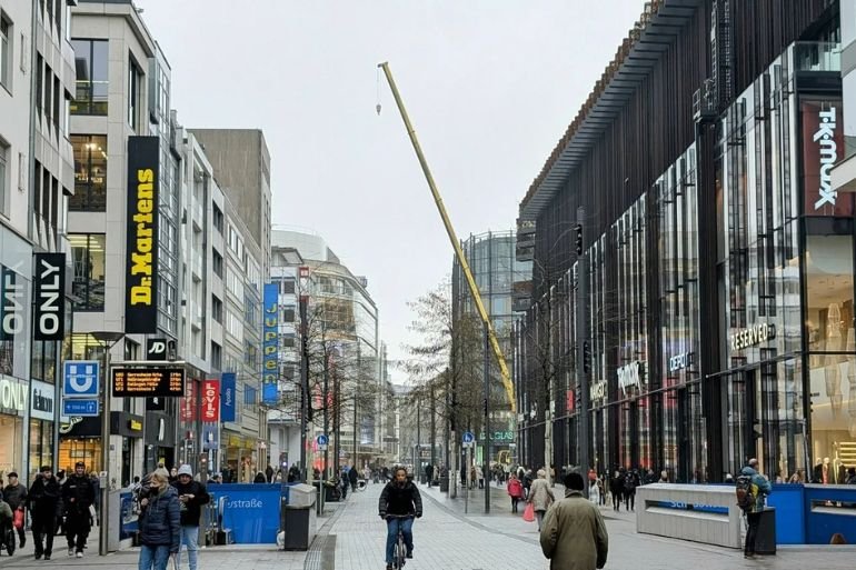 - Schadowstrasse: eje moderno de Düsseldorf, con grandes marcas, centros comerciales y constante afluencia de visitantes, símbolo del comercio contemporáneo alemán.