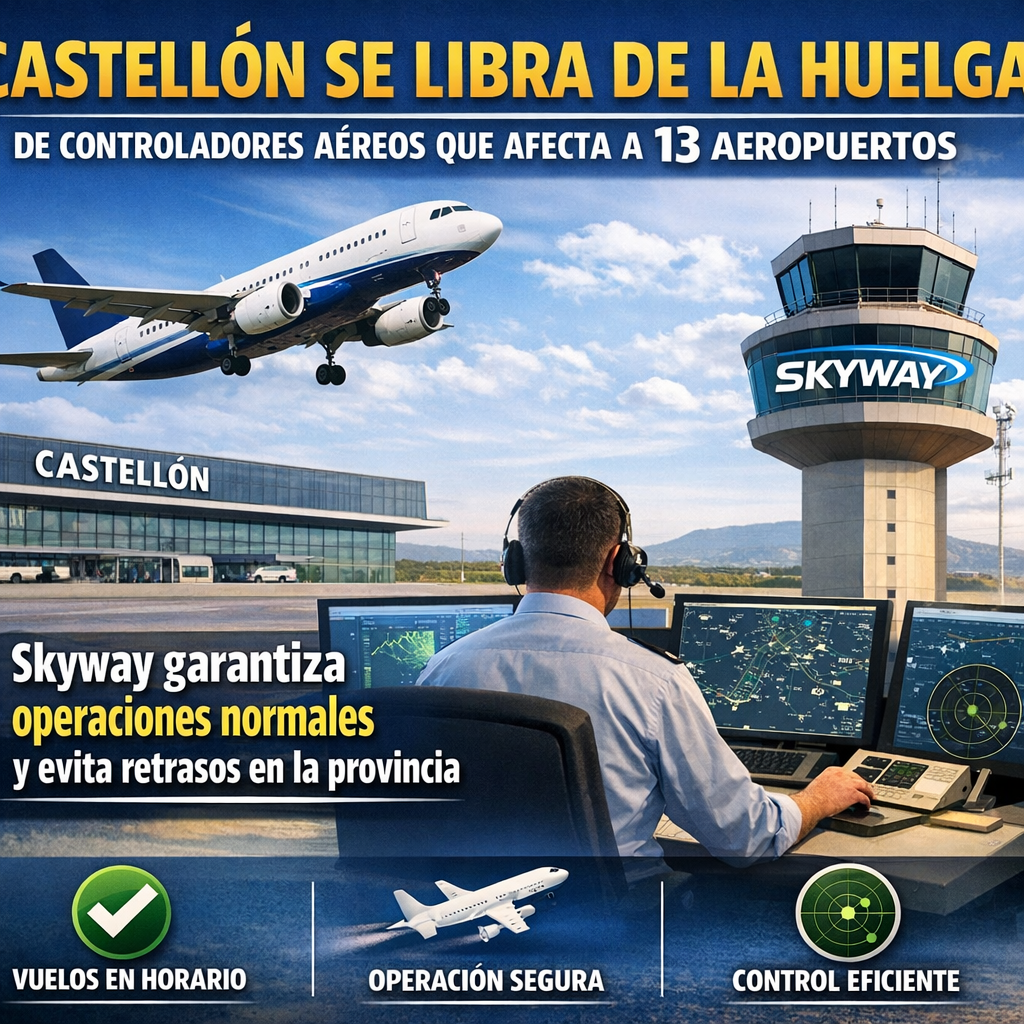 En medio de la huelga indefinida de controladores aéreos que afecta a 13 aeropuertos gestionados por Saerco, Castellón se libra de la huelga de controladores gracias a que su aeropuerto depende de Skyway, otra empresa operadora. La alerta inicial que incluía a Castellón en la lista de infraestructuras afectadas generó preocupación entre viajeros, pero la compañía ha confirmado que los vuelos en esta provincia se mantendrán con normalidad.