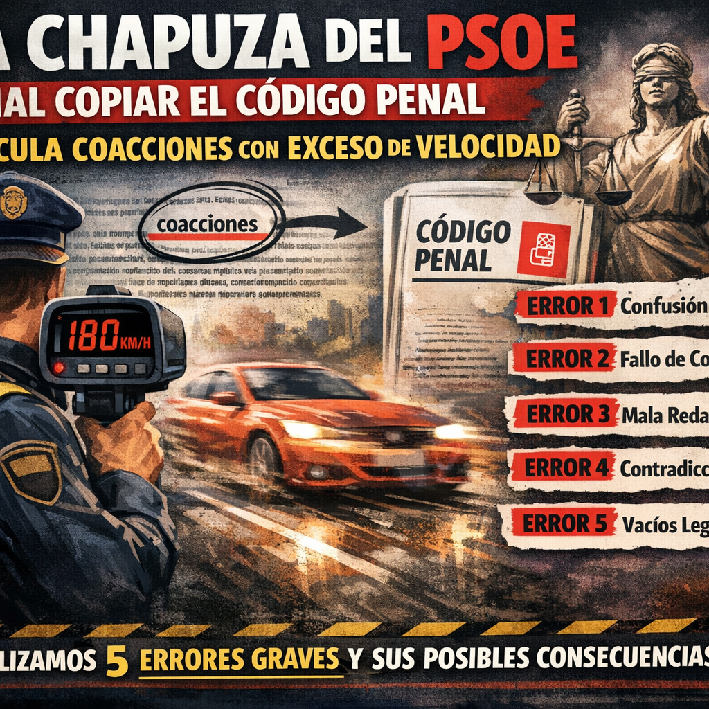 Chapuza del PSOE. Así califican fuentes jurídicas y varios grupos parlamentarios el error detectado en una proposición de ley presentada en el Congreso de los Diputados, donde el Grupo Socialista ha vinculado incorrectamente el delito de coacciones con los excesos de velocidad. El fallo, aunque se encuentra en la exposición de motivos —sin valor normativo directo—, ha generado un intenso debate sobre la calidad técnica de las iniciativas legislativas y sus posibles consecuencias.