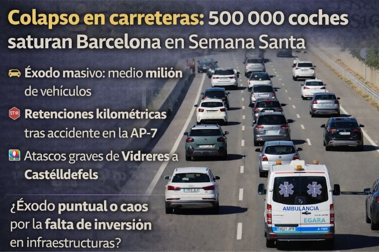 La operación salida de Semana Santa en Barcelona ha vuelto a poner en evidencia el colapso estructural de las infraestructuras en Cataluña. Según el Servei Català de Trànsit, cerca de 500 000 vehículos han abandonado el área metropolitana entre la mañana del jueves y el viernes, lo que representa el 90% de los 560 000 desplazamientos previstos.