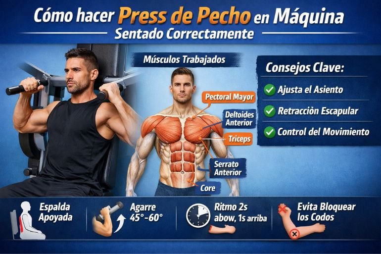 El press de pecho en máquina sentado es una de las mejores opciones para trabajar el pectoral con seguridad, mejorar la técnica y desarrollar fuerza de forma progresiva.