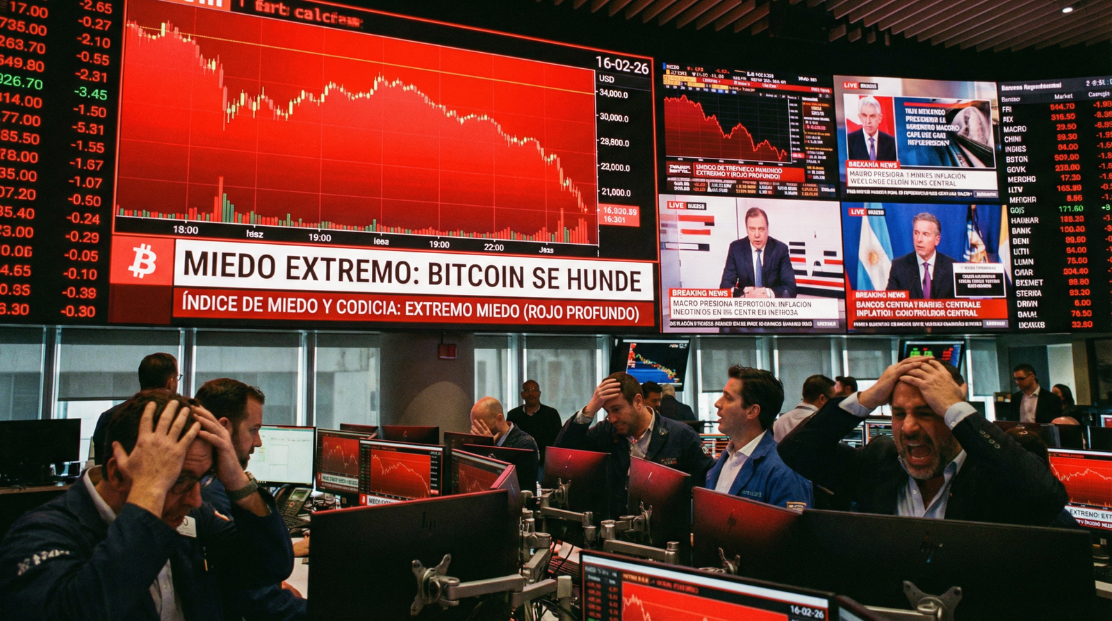 Cripto 16-02-26 deja una fotografía clara del mercado digital: presión bajista, sentimiento extremadamente negativo y un Bitcoin que lucha por sostener niveles técnicos clave en un entorno macroeconómico incierto. La jornada de hoy refleja cómo el ecosistema cripto continúa atravesando una fase de consolidación con sesgo bajista, marcada por liquidaciones en derivados y una reducción en el apetito por el riesgo.