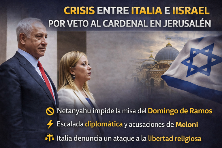 El Gobierno de Netanyahu impide al cardenal de Jerusalén acceder al Santo Sepulcro en Domingo de Ramos y desata un choque diplomático con Italia por la libertad religiosa.
