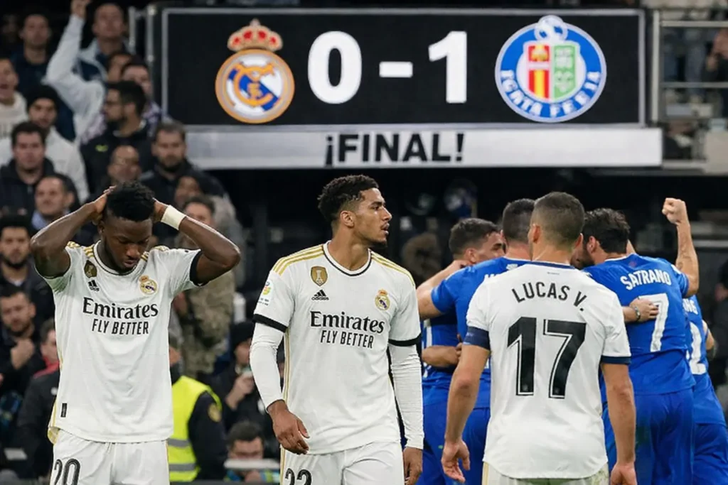El Real Madrid sufrió una inesperada derrota en el Estadio Santiago Bernabéu ante un combativo Getafe en un encuentro marcado por la tensión, las decisiones arbitrales discutidas y una creciente preocupación por el rumbo del equipo blanco en LaLiga. El 0-1 final no solo complica la pelea por el campeonato, sino que reabre el debate sobre el rendimiento del conjunto madridista en los momentos decisivos.