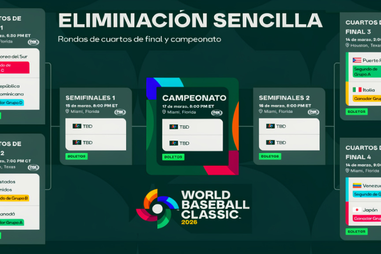 El Clásico Mundial de Béisbol 2026 entra en su fase decisiva: los cuartos de final ya están definidos y los ocho equipos que avanzaron de la fase de grupos se preparan para la eliminación directa. Los partidos arrancan el viernes y continúan el sábado, con duelos que prometen ser históricos.
