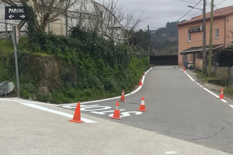 Ante la ausencia de aceras, el Concello ha optado por una solución que no pasa por construir nuevas zonas peatonales separadas, sino por ampliar la plataforma de las propias carreteras, permitiendo así una convivencia compartida entre vehículos y peatones.