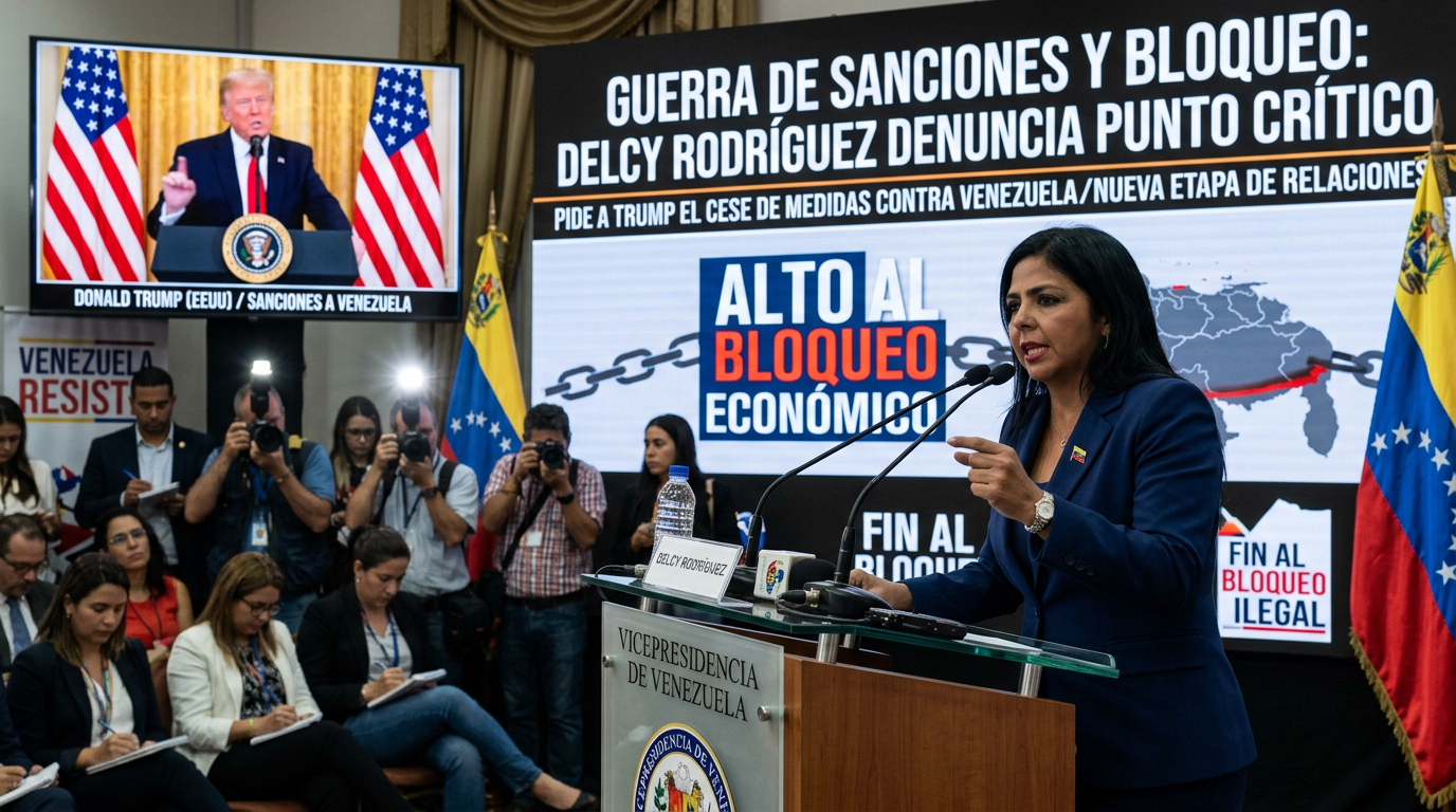 Guerra abierta sanciones y bloqueo es el concepto central de las recientes declaraciones de Delcy Rodríguez, presidenta encargada de Venezuela, quien este jueves pidió formalmente al presidente estadounidense Donald Trump que ponga fin a lo que describe como una “guerra abierta” de sanciones y bloqueo impuestas por Washington contra su país. Su pedido se produce en el contexto de un drástico giro diplomático tras la intervención militar estadounidense en la que se arrestó al expresidente Nicolás Maduro, y en medio de una fase de acercamiento bilateral que ha incluido ya ciertas flexibilizaciones en el ámbito petrolero.