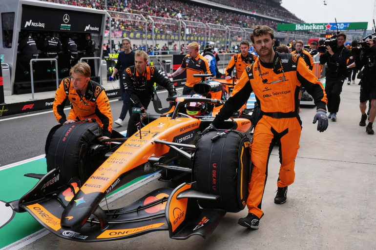 El drama comenzó antes de la salida: el coche de Norris no salió del garaje debido a fallos en la parte eléctrica de la unidad de potencia, mientras que Piastri tuvo que regresar de la parrilla sin poder arrancar. Andrea Stella, jefe del equipo, admitió la dependencia de Mercedes para resolver estos problemas: