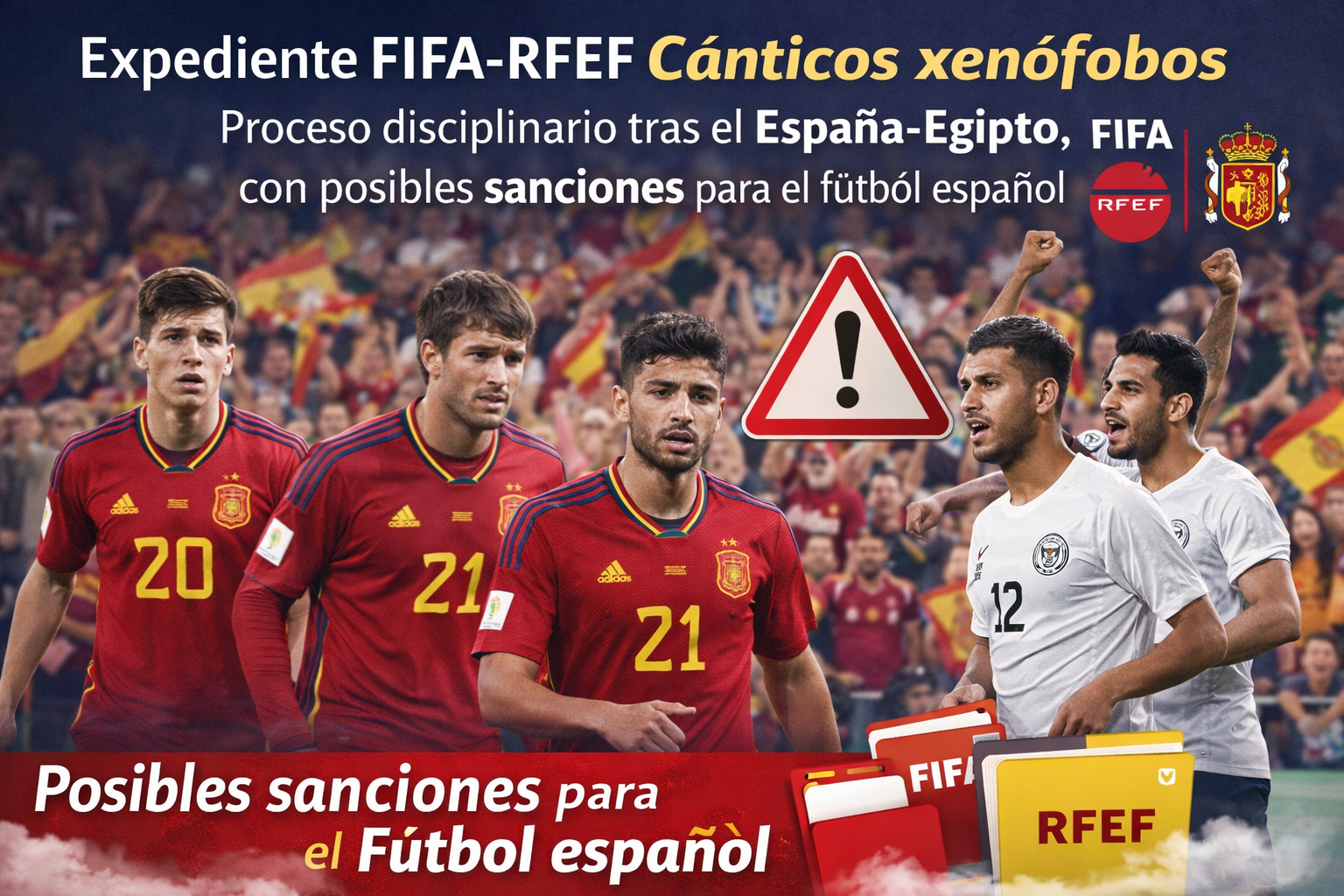 Expediente FIFA RFEF cánticos xenófobos. La apertura de este procedimiento disciplinario por parte de la FIFA marca un nuevo episodio en la lucha contra el racismo en el fútbol internacional. El organismo rector ha decidido actuar tras los incidentes registrados durante el partido amistoso entre España y Egipto disputado el pasado 31 de marzo en el RCDE Stadium, donde se escucharon cánticos de carácter xenófobo desde la grada.
