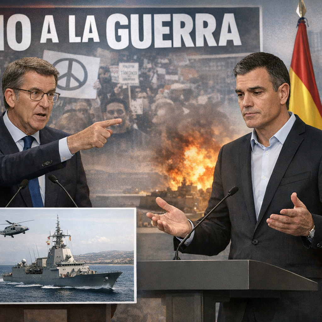 El líder de la oposición sostuvo que la postura del Ejecutivo resulta contradictoria. A su juicio, el presidente del Gobierno intenta transmitir un mensaje pacifista ante la opinión pública mientras adopta decisiones militares que lo desmienten. Durante su intervención, Feijóo ironizó con la estrategia del Ejecutivo y resumió su crítica con una frase contundente: “Dicen no a la guerra al mismo tiempo que manda una fragata de guerra a la guerra”.