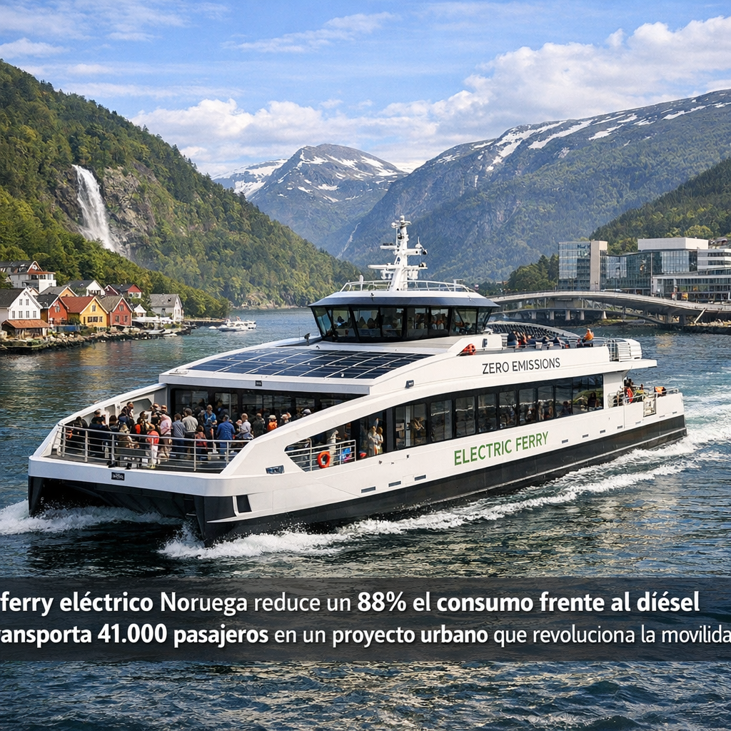 El ferry eléctrico Noruega se ha convertido en uno de los ejemplos más llamativos de innovación en transporte sostenible en Europa. El ferry eléctrico Noruega ha demostrado que es capaz de transportar más de 41.000 pasajeros con un consumo energético hasta un 88% inferior al de los barcos diésel tradicionales, marcando un antes y un después en la movilidad fluvial urbana.