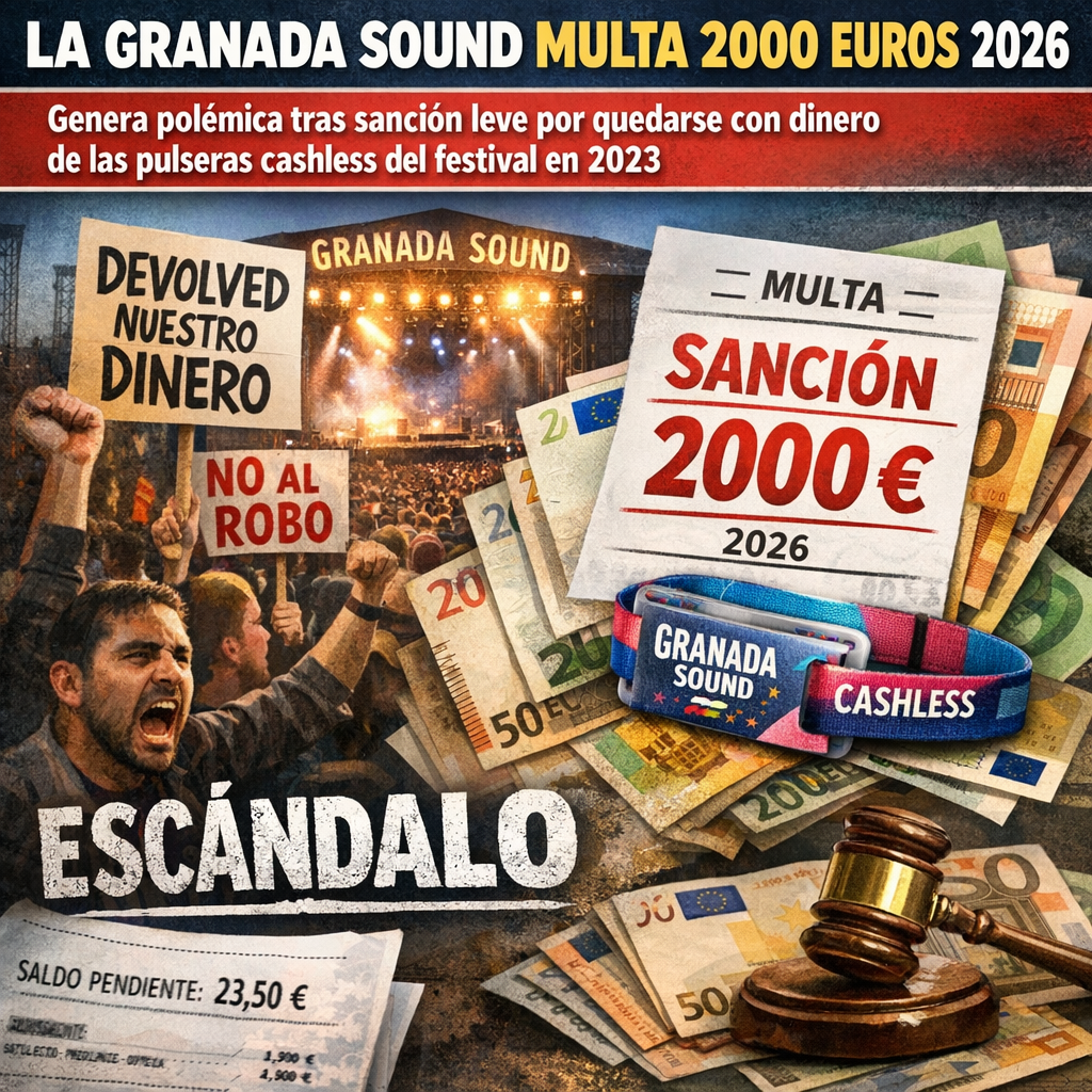 La Granada Sound multa 2000 euros 2026 ha generado una fuerte controversia en el ámbito del consumo y los derechos de los asistentes a festivales. La decisión del Ayuntamiento de Granada de imponer una sanción de solo 2.000 euros en el caso de la Granada Sound multa 2000 euros 2026 ha sido calificada como “ridícula” por la organización Facua, que denunció la retención indebida de dinero sobrante de las pulseras cashless.
