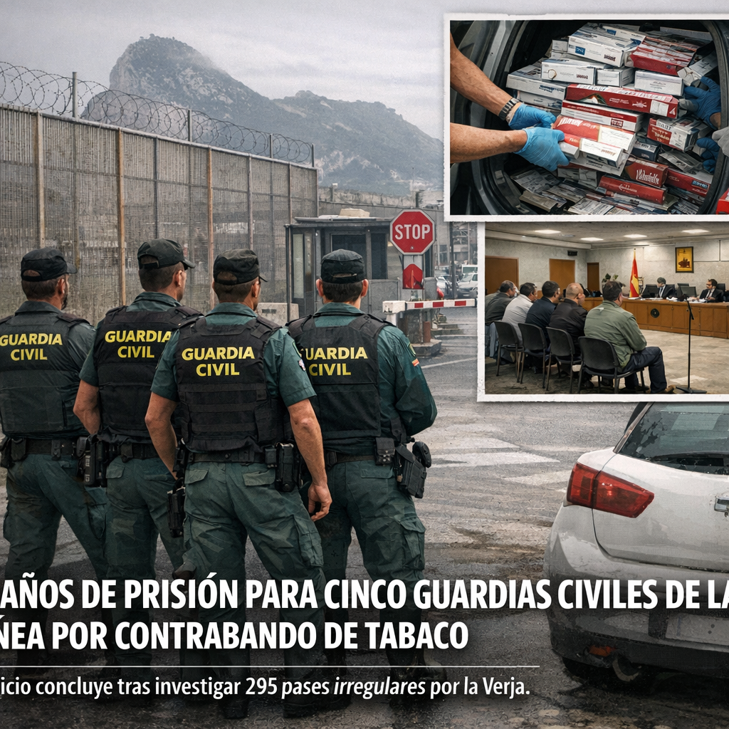 Los hechos se remontan a los años 2016 a 2018 y afectan al puesto de control aduanero en La Línea, que regula las mercancías procedentes de Gibraltar. La investigación, llevada a cabo por Asuntos Internos de la Guardia Civil, determinó que los cinco agentes, liderados por uno de ellos, colaboraban con otras cinco personas para introducir tabaco de contrabando mediante una flota de al menos once vehículos, incluyendo coches, furgonetas y camiones caleteados.