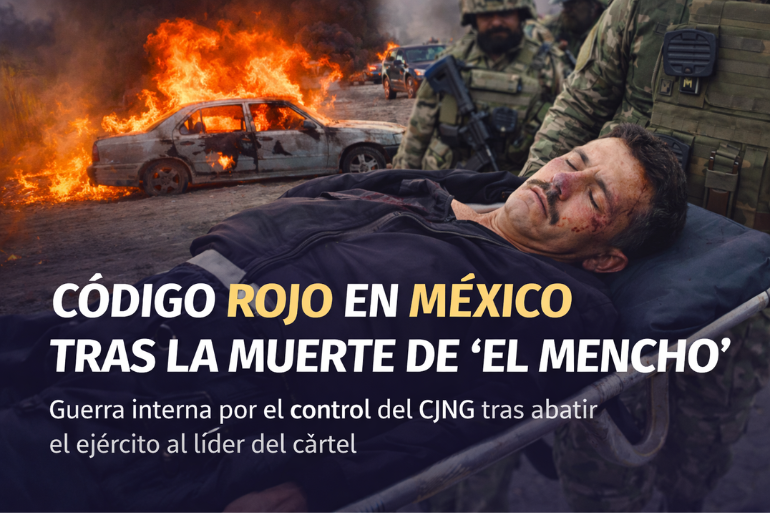 El abatimiento de Nemesio Oseguera Cervantes, alias “El Mencho”, líder del Cártel Jalisco Nueva Generación (CJNG), ha desatado un código rojo de violencia en Jalisco y varios estados de México. Bloqueos, quema de vehículos, evacuaciones hospitalarias y suspensión de vuelos marcan el inicio de una posible guerra interna por el control del cártel.