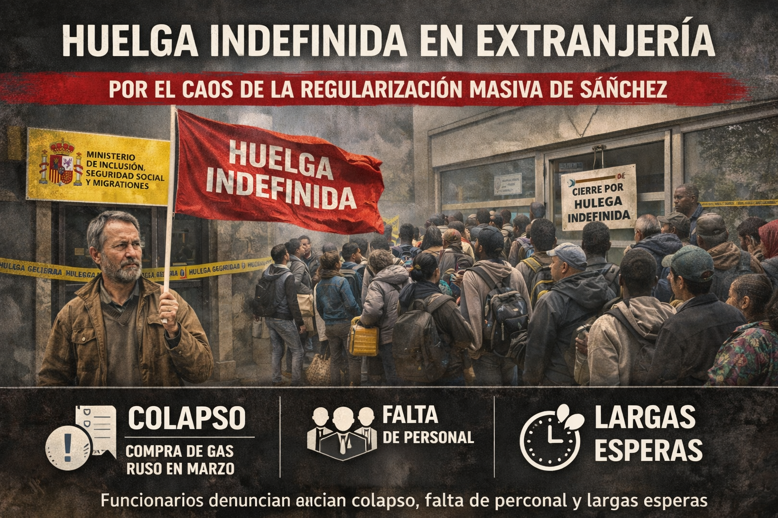 La huelga indefinida en Extranjería amenaza con convertirse en uno de los mayores conflictos laborales en la administración pública durante las próximas semanas. Si no se alcanzan acuerdos sobre refuerzos y organización, el proceso de regularización podría comenzar en medio de un importante caos administrativo.