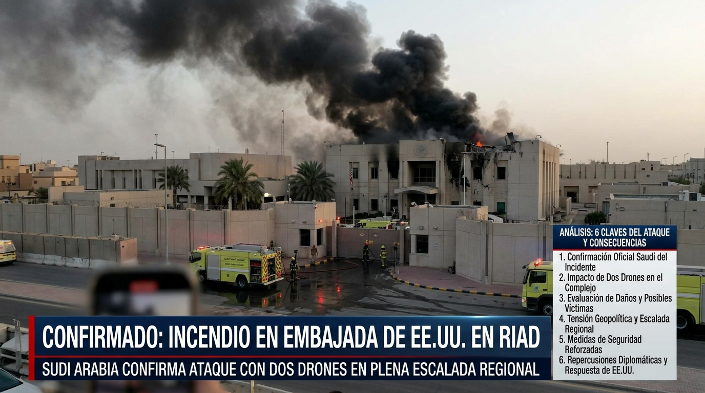 Las próximas horas serán clave para determinar si la situación se contiene o si deriva en un conflicto de mayor alcance. Lo que ya es evidente es que el incendio en Embajada de EEUU en Riad marca un punto crítico en la cadena de acontecimientos recientes en Oriente Medio, elevando la tensión a niveles que preocupan a la comunidad internacional.
