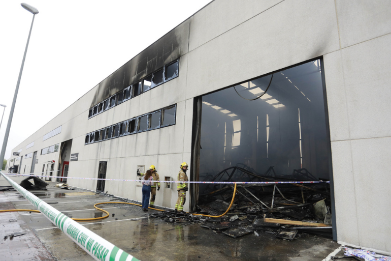 El fuego se originó durante la madrugada del miércoles al jueves en la sede central de Trison, ubicada en el polígono de Espíritu Santo (Sada, A Coruña).