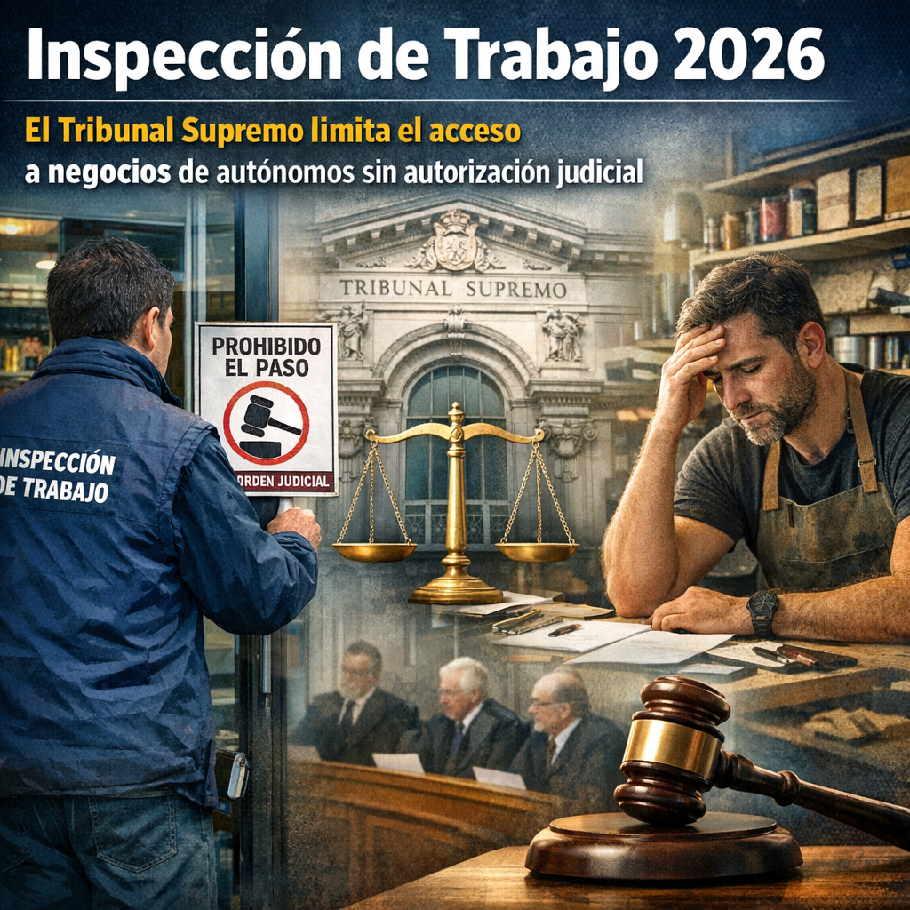 La Inspección de Trabajo 2026 ha sufrido un cambio jurídico de gran relevancia tras una nueva sentencia del Tribunal Supremo que impide a los inspectores acceder al negocio de los autónomos sin autorización judicial previa o consentimiento expreso del titular. Este criterio redefine los límites de actuación de la administración laboral en España.