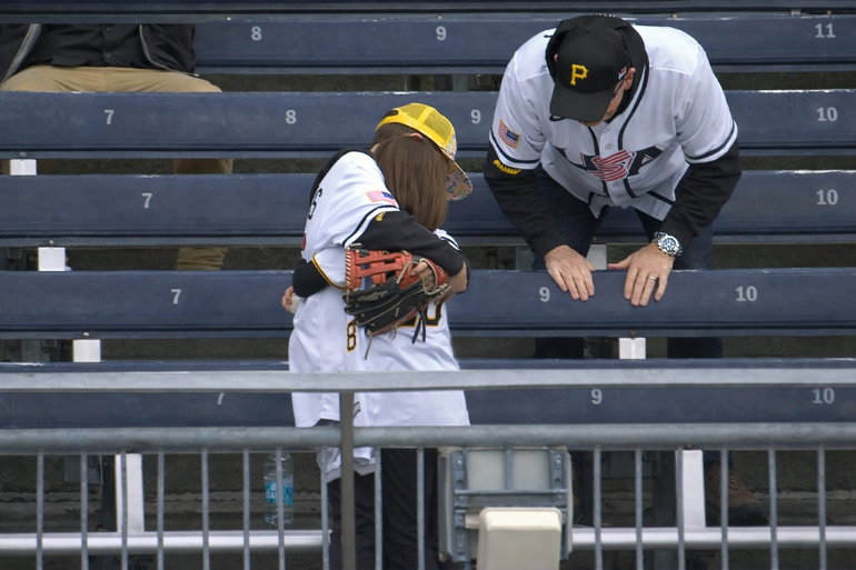 Durante un momento entre innings en el estadio de Pittsburgh, el jardinero Jake Mangum protagonizó un gesto habitual en la MLB: lanzó una pelota hacia las gradas para un joven aficionado.