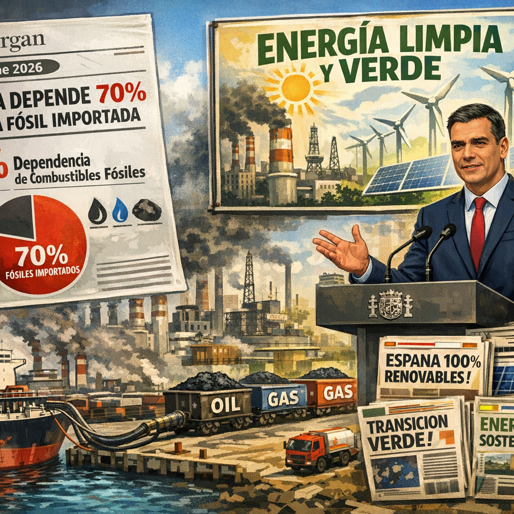 El informe de JP Morgan 2026 evidencia que España depende en un 70% de combustibles fósiles importados y que la atención sobre la electricidad renovable no refleja la realidad del consumo total. La conclusión es clara: la propaganda energética del Gobierno de Pedro Sánchez sobre la transición ecológica exagera los avances y oculta la dependencia real del país de fuentes fósiles externas.