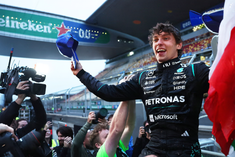 Antonelli, que ascendió a Mercedes en 2025 tras un historial impecable en Fórmula 4, Fórmula Regional y Fórmula 2, se impuso a George Russell y a Lewis Hamilton en Shanghái, en una carrera que quedará en la memoria de los tifosi.