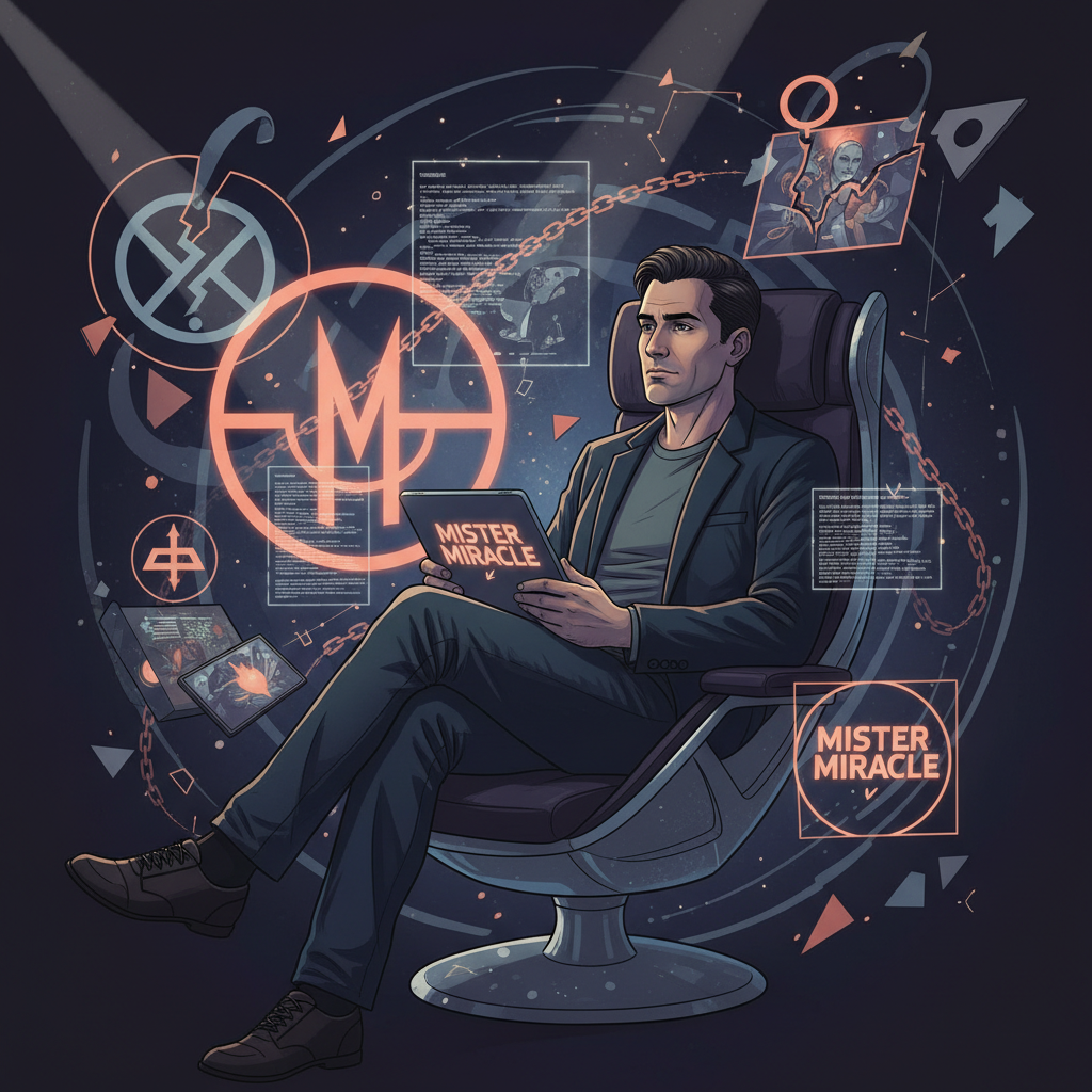 Mister Miracle, creado por Jack Kirby en 1971, es el seudónimo de Scott Free, hijo del Alto Padre de Nueva Génesis. El personaje fue entregado a Darkseid y criado bajo condiciones severas en Apokolips, un entorno hostil y desolador. Scott se convirtió en un experto escapista y eventualmente se trasladó a la Tierra, donde adoptó el legado de Thaddeus Brown, un artista de circo.