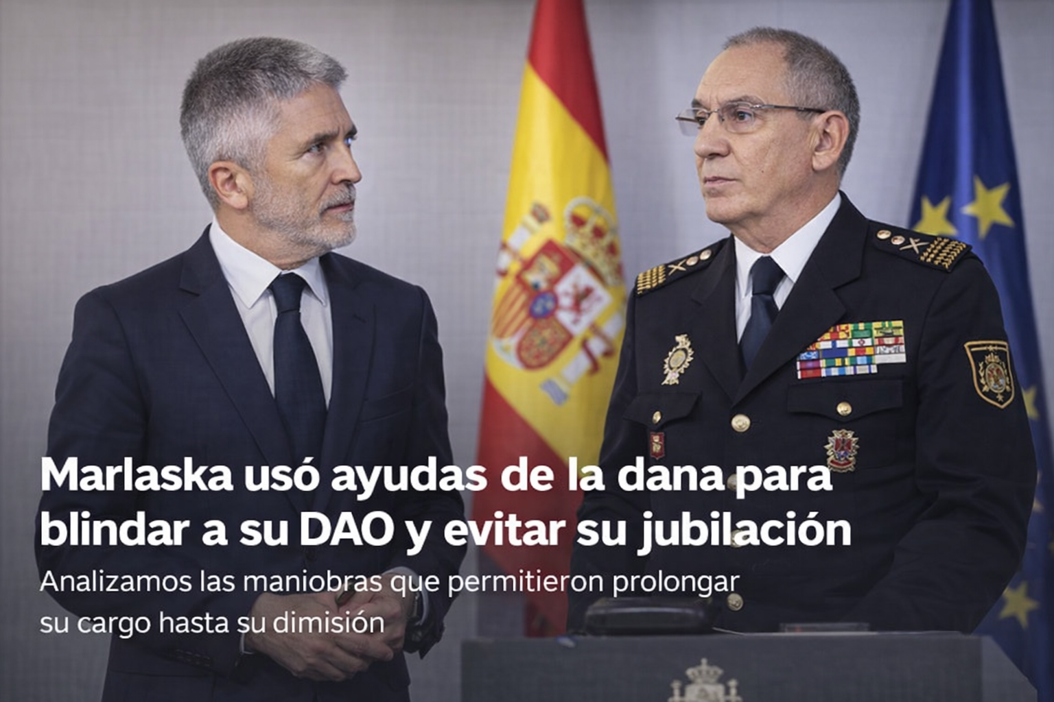 Marlaska usó hasta las ayudas de la dana para blindar a su DAO en una operación legislativa que ha provocado una fuerte polémica política y judicial. El ministro del Interior habría recurrido a un real decreto destinado a ayudas por la DANA de Valencia para modificar la ley y evitar la jubilación forzosa del entonces Director Adjunto Operativo (DAO) de la Policía Nacional, José Ángel González, que ha dimitido tras conocerse que estaba siendo investigado por una presunta agresión sexual.