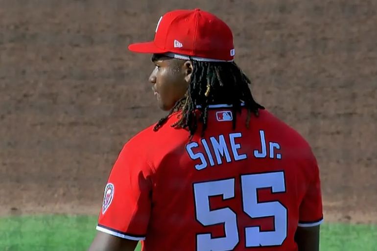 El joven prospecto de los Nacionales de Washington, Miguel Sime Jr., de apenas 18 años, se convirtió en la sensación del Spring Breakout 2026 al ponchar al quinto mejor prospecto de MLB, JJ Wetherholt, con una recta que alcanzó las 101 mph, dejando volando incluso el casco del bateador.