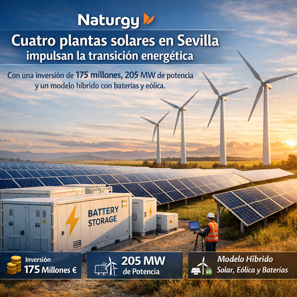 Naturgy cuatro plantas solares en Sevilla marca un nuevo hito en el desarrollo de energías renovables en Andalucía. Naturgy cuatro plantas solares en Sevilla representa la puesta en marcha del clúster fotovoltaico Marisol, un proyecto estratégico que refuerza la posición de la compañía como uno de los principales actores del sector energético en España. Naturgy cuatro plantas solares en Sevilla arranca con una inversión de 175 millones de euros y una potencia cercana a los 205 MW, consolidando así uno de los desarrollos solares más relevantes del sur del país.