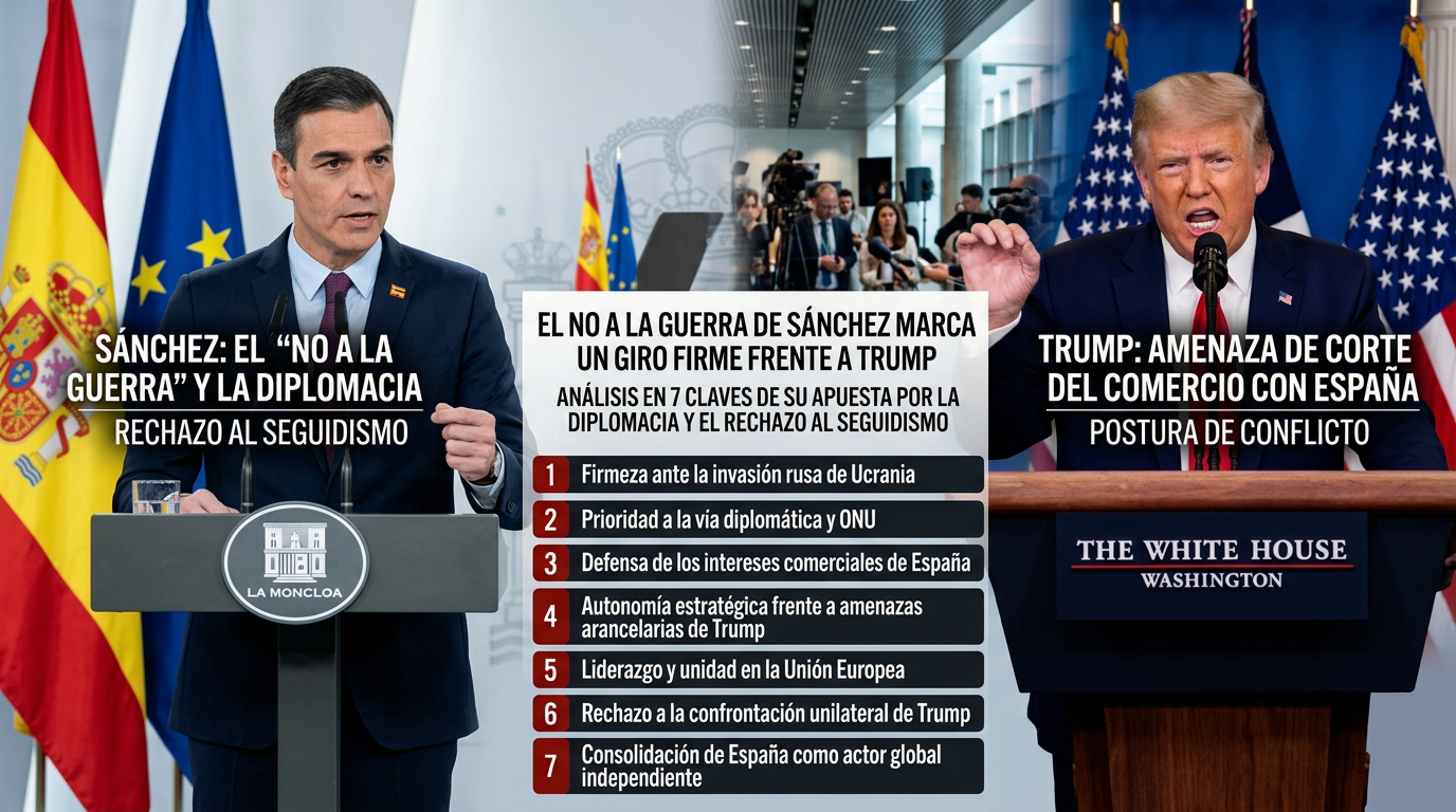 En definitiva, el no a la guerra no es solo un lema, sino una declaración estratégica que combina principios jurídicos, memoria histórica y cálculo político. Frente a la presión de Washington, el Ejecutivo español apuesta por la diplomacia como única vía sostenible. La incógnita ahora es si esa firmeza reforzará el liderazgo internacional de España o intensificará el pulso con la Casa Blanca en un contexto global cada vez más volátil.