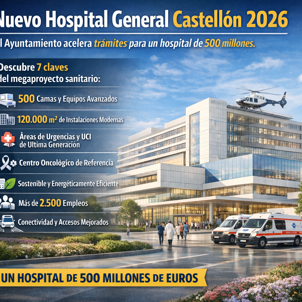 Nuevo Hospital General Castellón 2026 se ha convertido en el eje central de la planificación sanitaria y urbanística de la ciudad tras la intensificación de los trámites por parte del Ayuntamiento de Castellón para avanzar en su construcción. El proyecto, considerado el más importante de la legislatura, prevé una inversión superior a los 500 millones de euros y supone una transformación histórica del sistema sanitario provincial.