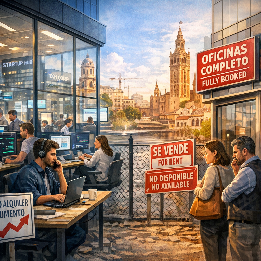 Las oficinas en Andalucía encarecen a un ritmo cada vez más acelerado como consecuencia directa del auge del sector tecnológico, especialmente en ciudades como Málaga y Sevilla. Este fenómeno, que refleja el éxito del ecosistema digital andaluz, está generando al mismo tiempo un efecto adverso: miles de pequeñas y medianas empresas encuentran cada vez más dificultades para acceder a espacios corporativos adecuados.