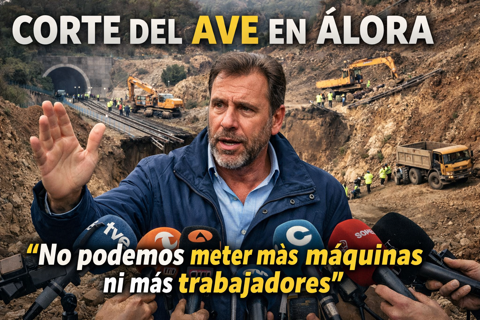 Corte del AVE en Álora. Esta es la situación que sigue generando polémica en Andalucía tras más de un mes y medio de interrupción de la línea de alta velocidad entre Málaga y Madrid. El ministro de Transportes, Óscar Puente, ha ofrecido nuevas explicaciones sobre el problema, insistiendo en que no es posible acelerar más los trabajos.