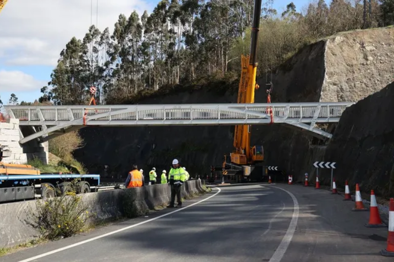 La construcción de la nueva senda peatonal y ciclista que conectará O Milladoiro con la estación intermodal de Santiago de Compostela ha dado un paso decisivo con la instalación del primer tramo de la pasarela elevada sobre uno de los puntos viarios más transitados del área metropolitana.