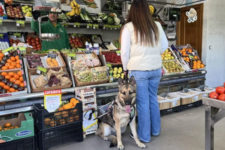 En A Coruña, los perros guía de la ONCE reivindican su derecho de acceso a comercios de alimentación mientras denuncian el desconocimiento legal que aún genera conflictos con algunos negocios.