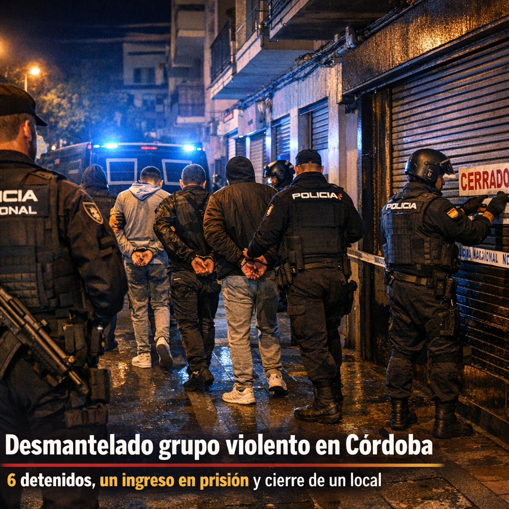 La Policía Nacional desmantela grupo violento en Córdoba en un operativo especial desarrollado en el barrio de Ciudad Jardín que se ha saldado con seis personas detenidas, un ingreso en prisión provisional y el cierre de un establecimiento vinculado a diversos incidentes delictivos.