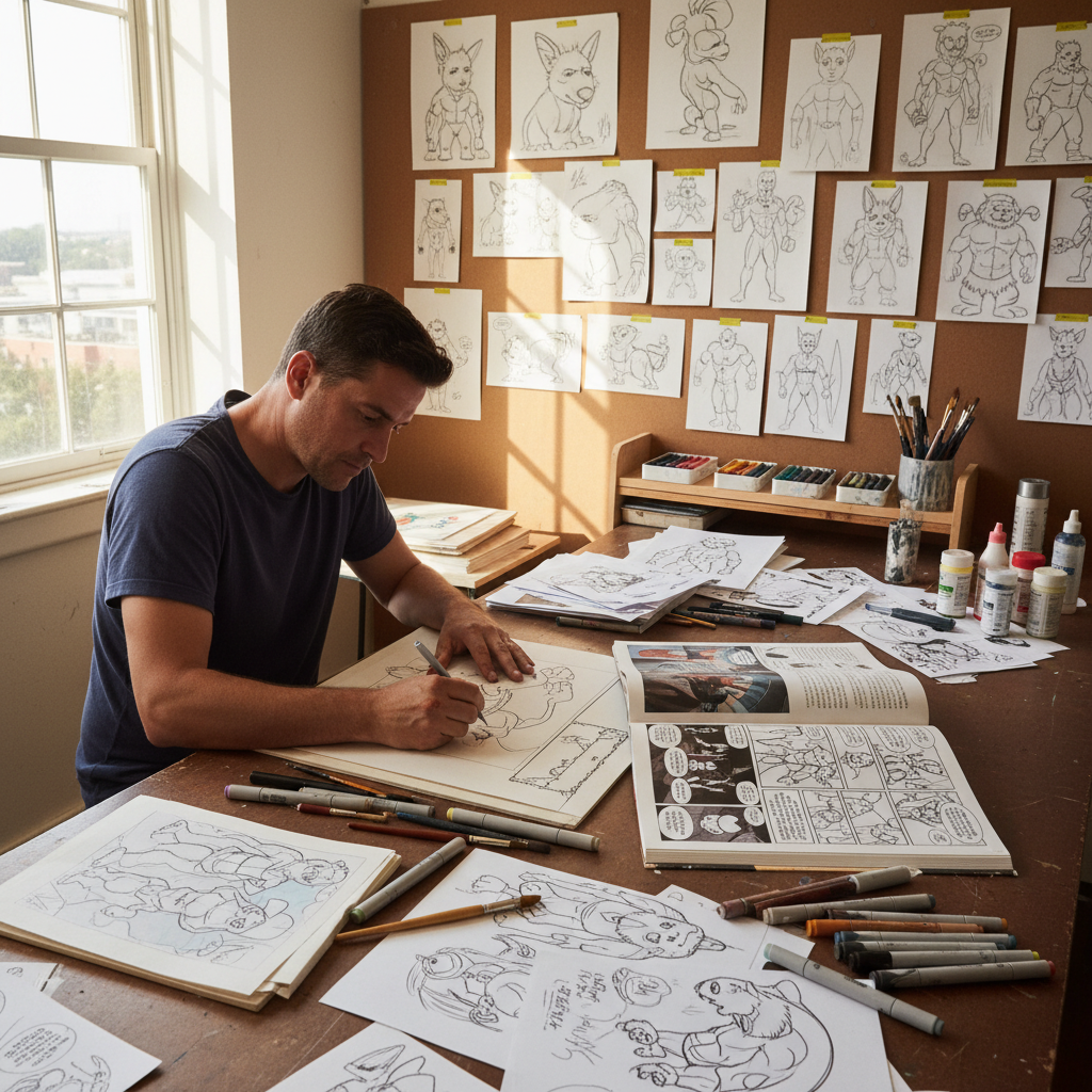 El siguiente paso incluye la entintado de los bocetos, donde se definen las líneas definitivas que componen la obra. Este proceso es clave para asegurar que el lenguaje visual se mantenga coherente a lo largo de todo el cómic.