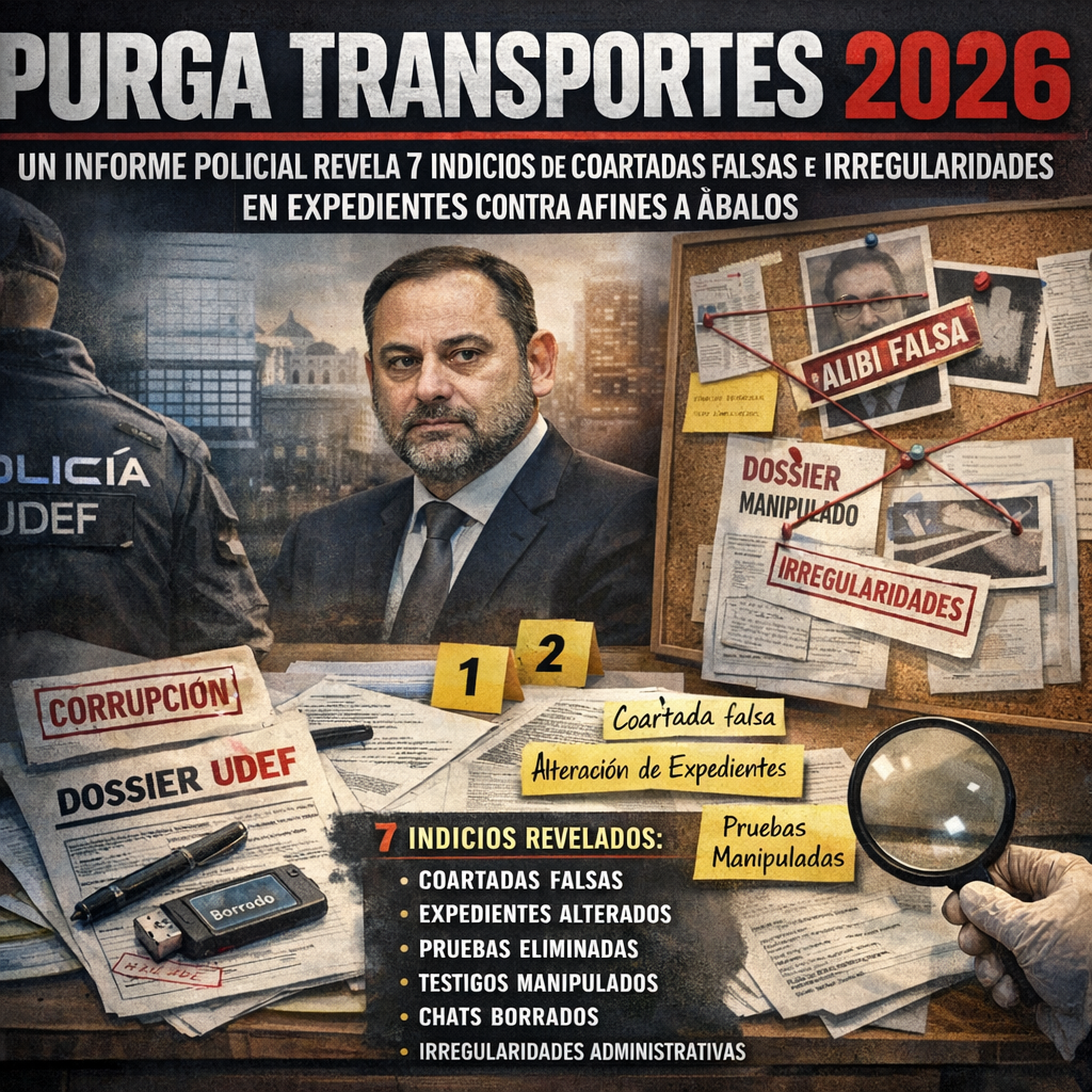Purga Transportes 2026 es el concepto que emerge tras conocerse un informe policial que apunta a la existencia de presuntas coartadas falsas, manipulación de pruebas y expedientes disciplinarios irregulares dentro del Ministerio de Transportes. El documento, elaborado por la Unidad de Régimen Disciplinario del Cuerpo Nacional de Policía, señala a altos cargos del entorno del ministro Óscar Puente por una supuesta estrategia para apartar a funcionarios vinculados a la etapa de José Luis Ábalos.