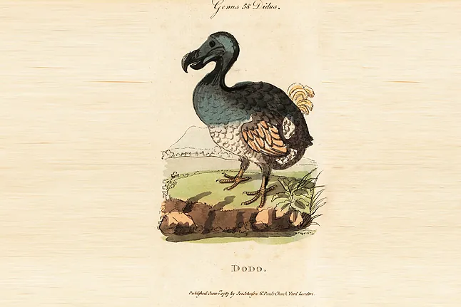 El dodo fue descubierto en 1598 en Mauricio y en apenas 100 años desapareció completamente, víctima de la caza humana y de especies invasoras como ratas, gatos y cerdos. Incapaz de volar y sin depredadores naturales, su comportamiento confiado lo convirtió en presa fácil.