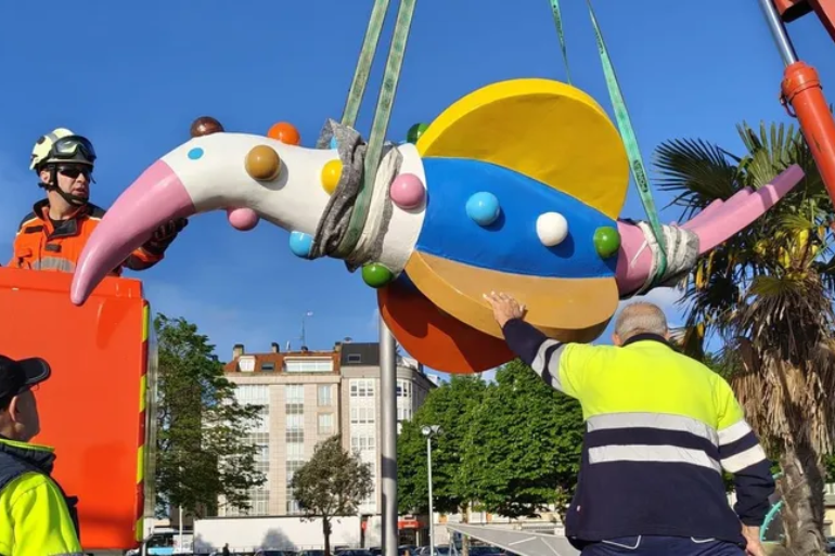 El Ayuntamiento de Sada ha completado la restauración del conocido “pájaro” del artista Jorge Peteiro, una escultura instalada en 2008 que, con el paso del tiempo, había perdido la intensidad de sus colores originales y mostraba un evidente deterioro.