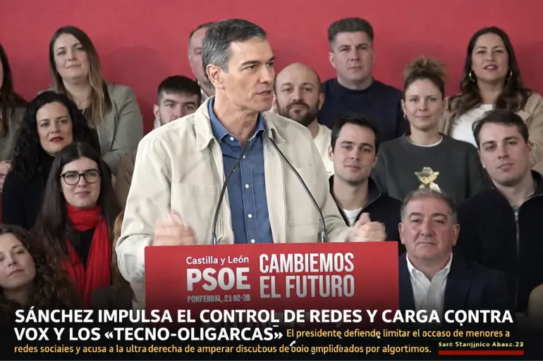 El presidente del Gobierno, Pedro Sánchez, ha defendido este domingo nuevas medidas para regular el acceso de menores de 16 años a las redes sociales, en un discurso pronunciado durante un mitin en Ponferrada (León).