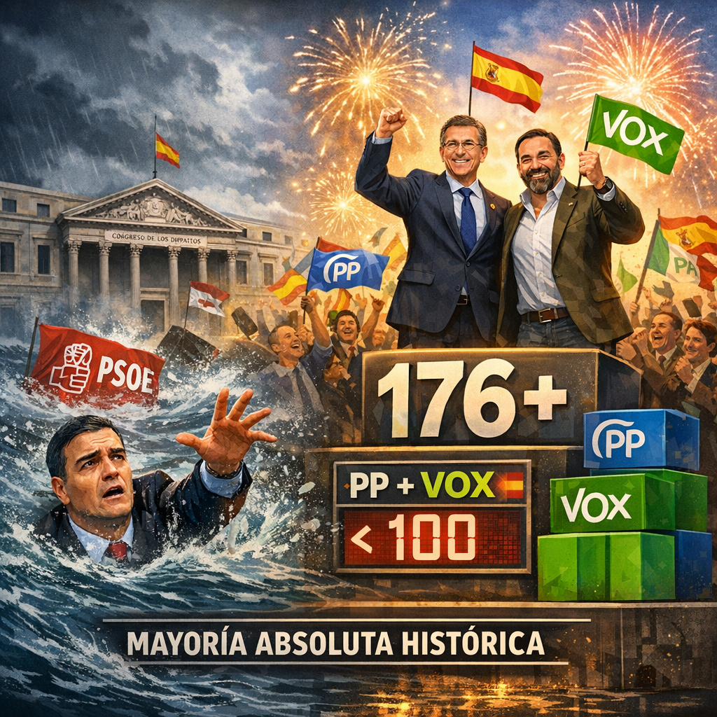 El líder del PP, Alberto Núñez Feijóo, tendría así vía libre para formar Ejecutivo con el apoyo parlamentario de Vox, consolidando un bloque de derechas que, según las encuestas, concentra ya más del 50% del electorado.